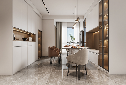 空間大面積描繪溫暖的棕灰色調(diào),將優(yōu)雅而內(nèi)斂的視覺觀感散布于每一個細節(jié)之中。設(shè)計師嘗試以一種接近生活本質(zhì)的視角觀察點滴日常的豐富性,將生活主場景面向自然景色,創(chuàng)造開闊明亮、安靜舒適的居住氛圍,讓每一位居住其中的人與自然對話,感受自在。