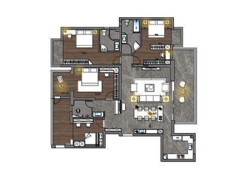 這個戶型,設計師當時覺得大通廳及大陽臺比較大,很舒服,但是弊端是房間都太小,臥室小而多,很多拐角顯得多余,怎么看都 不舒服。
